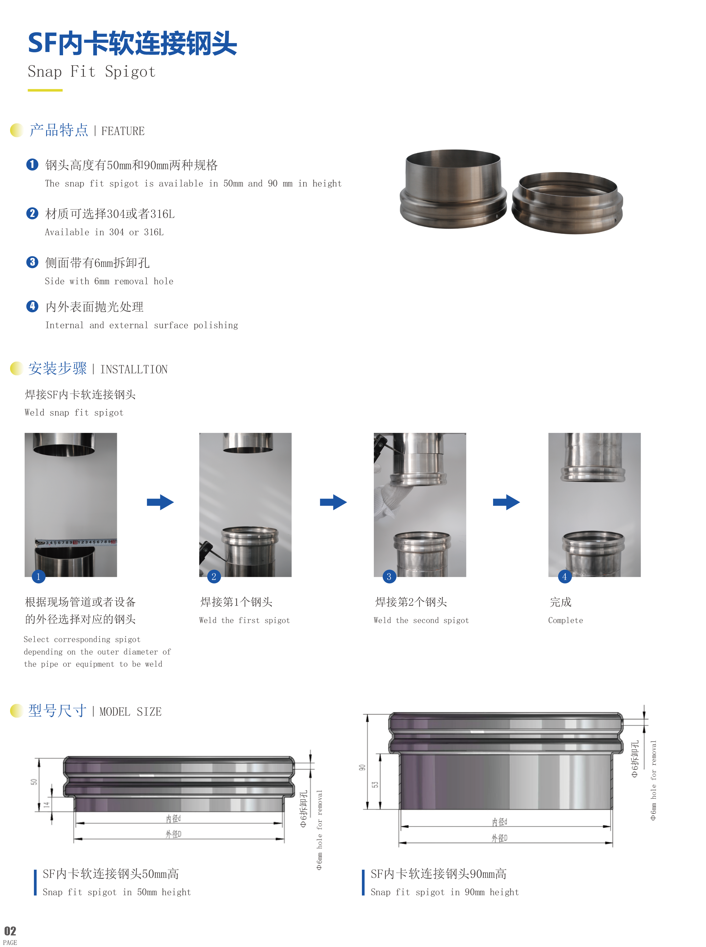 1、鋼頭高度有50mm和90mm兩種規(guī)格2、材質(zhì)可選擇304或者316L3、側(cè)面帶有6mm拆卸孔4、內(nèi)外表面拋光處理
